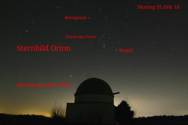 Orion und Sternwarte, Aufnahme Martin Steinbeißer Febr 2018
